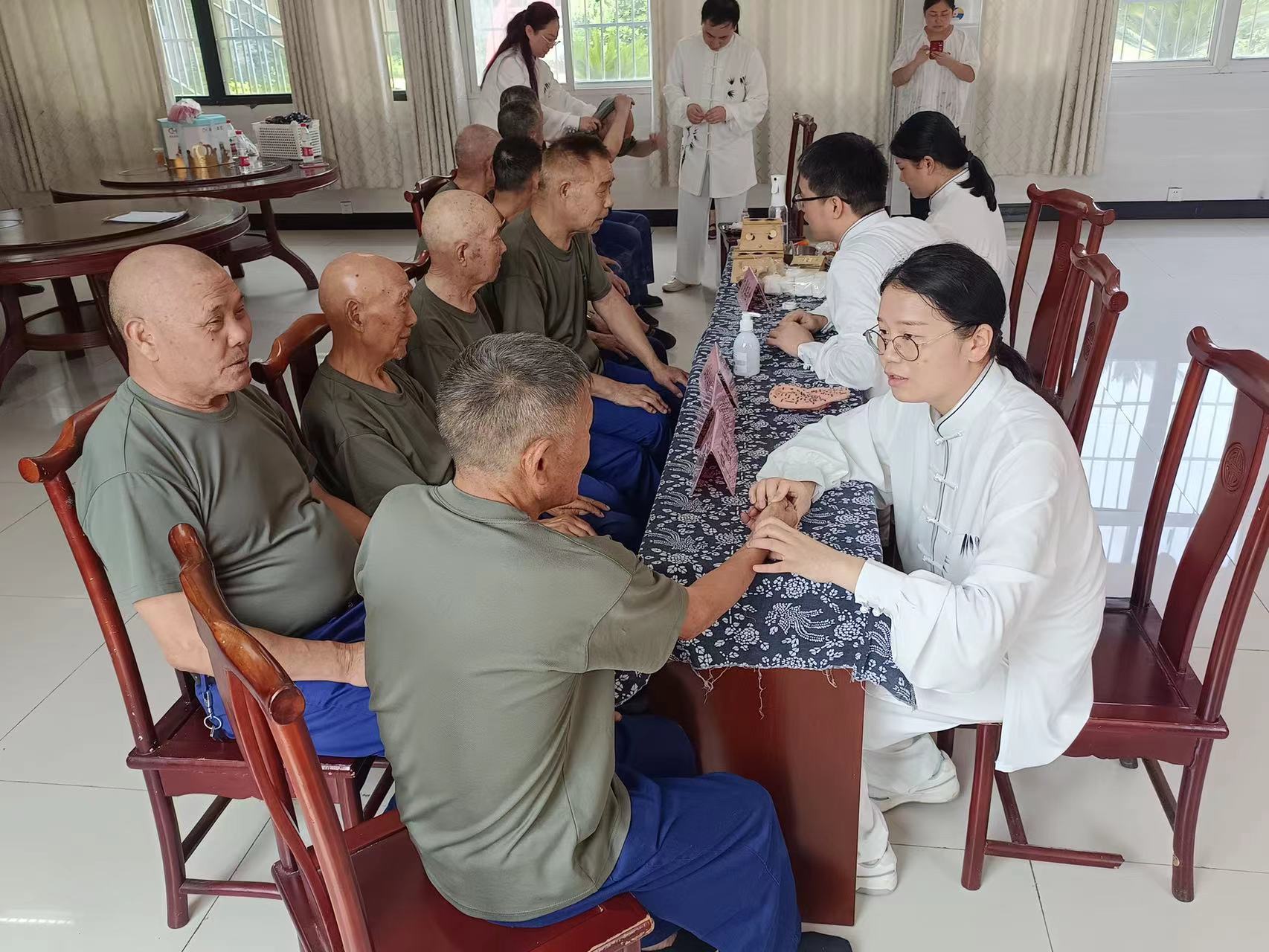 此外,中医科的医护人员还为老兵们进行了现场义诊,传授了中医四时养生保健知识,宣传了中医适宜技术,介绍了中医的疾病预防和保健方法。她们以优质的护理服务关心关爱着老兵们的身体健康。