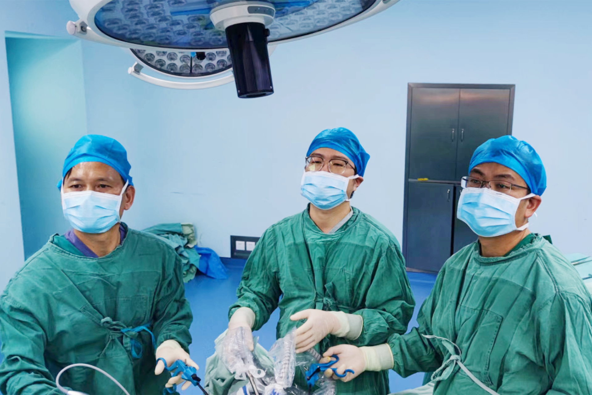 在高玉宝、唐学虎、住院医师潘超和医疗团队的认真讨论和积极准备下,手术团队精心操作了一个多小时,成功为王女士进行了胸腔镜探查、左侧肺大疱切除手术以及胸膜粘连松解术。整个手术过程非常顺利,术后患者恢复良好。手术后的第三天,患者拔除了胸腔闭式引流管,第五天康复出院,术后没有出现任何并发症。患者对整个治疗过程非常满意。